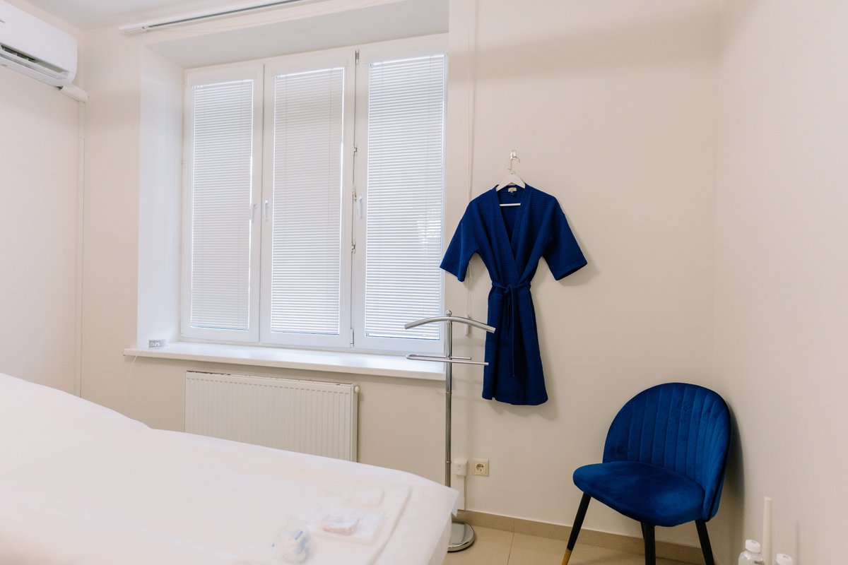 Сама клиника большая, приятная, меню напитков, уборная очень красивая, есть абсолютно все! Даже можно побрызгаться духами, кстати себе заказала этот аромат.